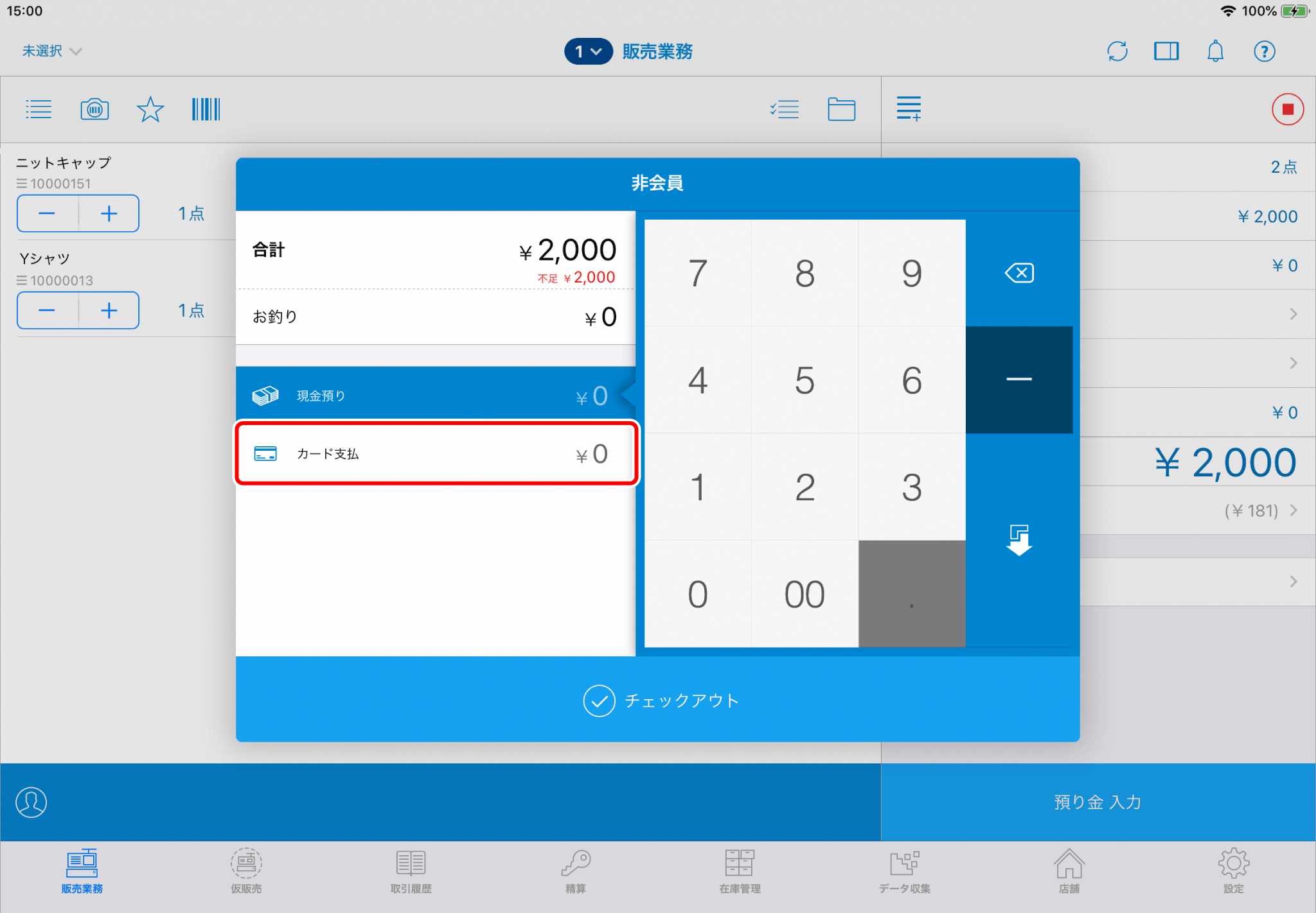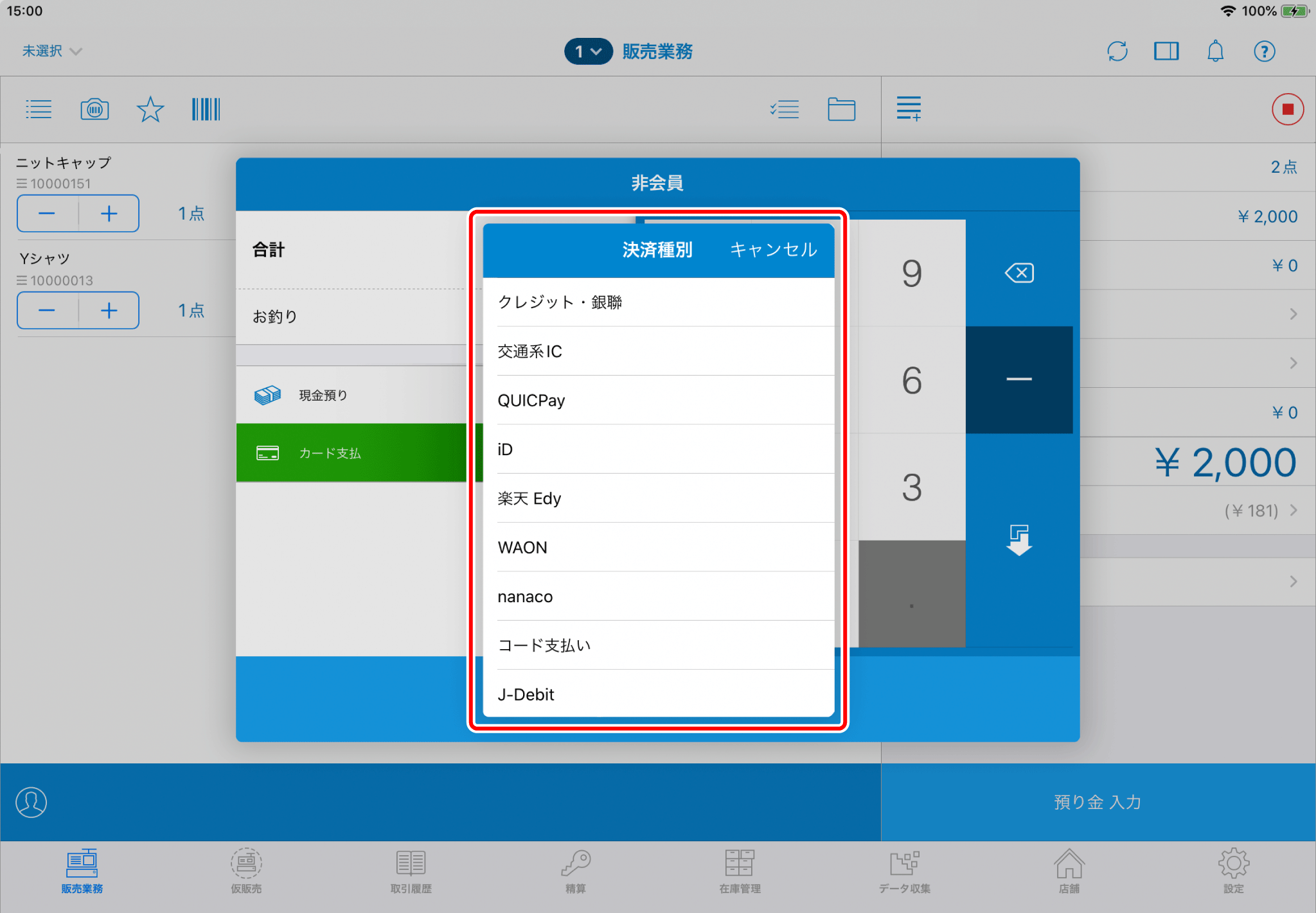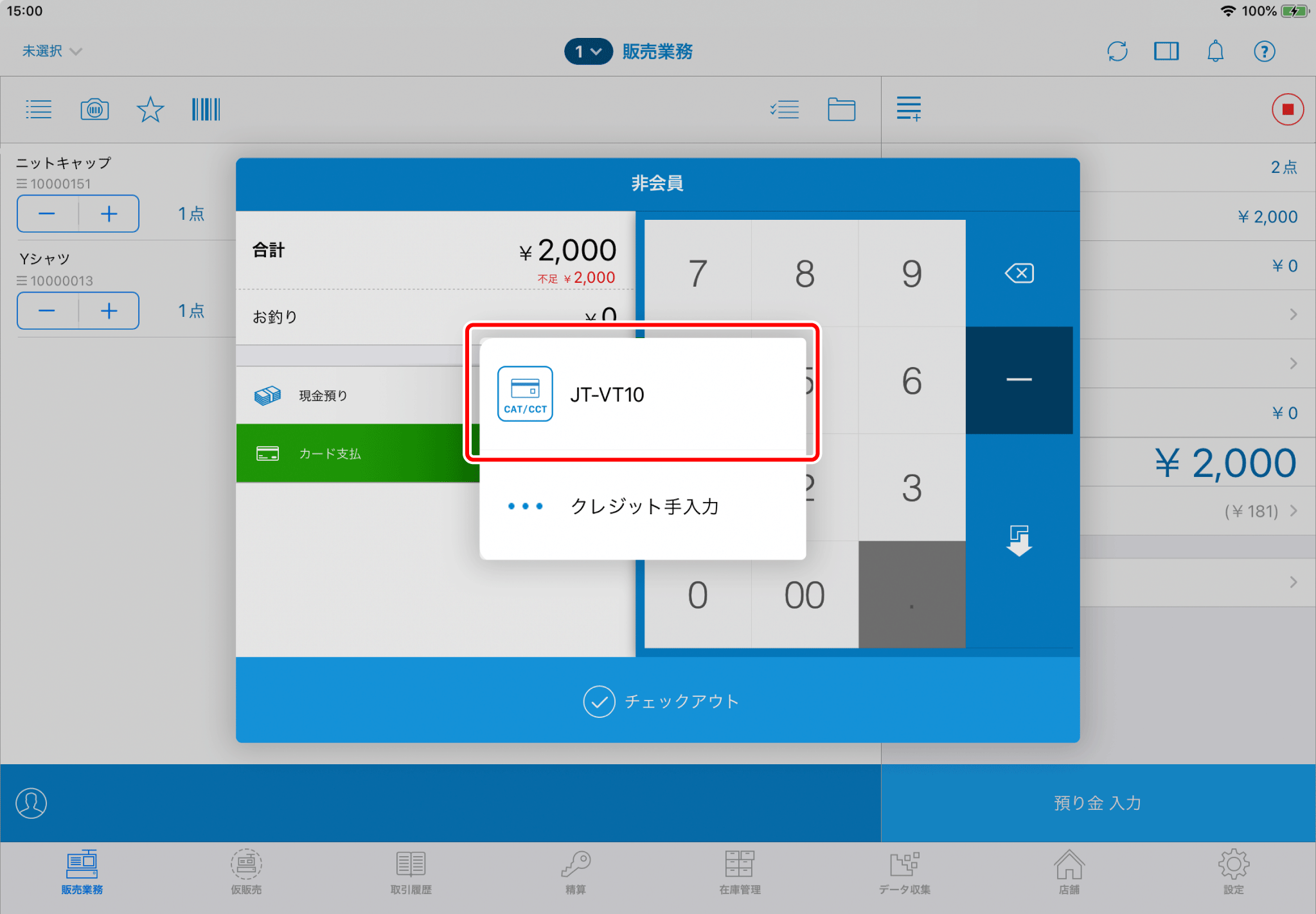 ※ 決済方法は『設定 > クレジットカード設定 > JT-VT10』の【決済種別】でONにした項目が表示されます -