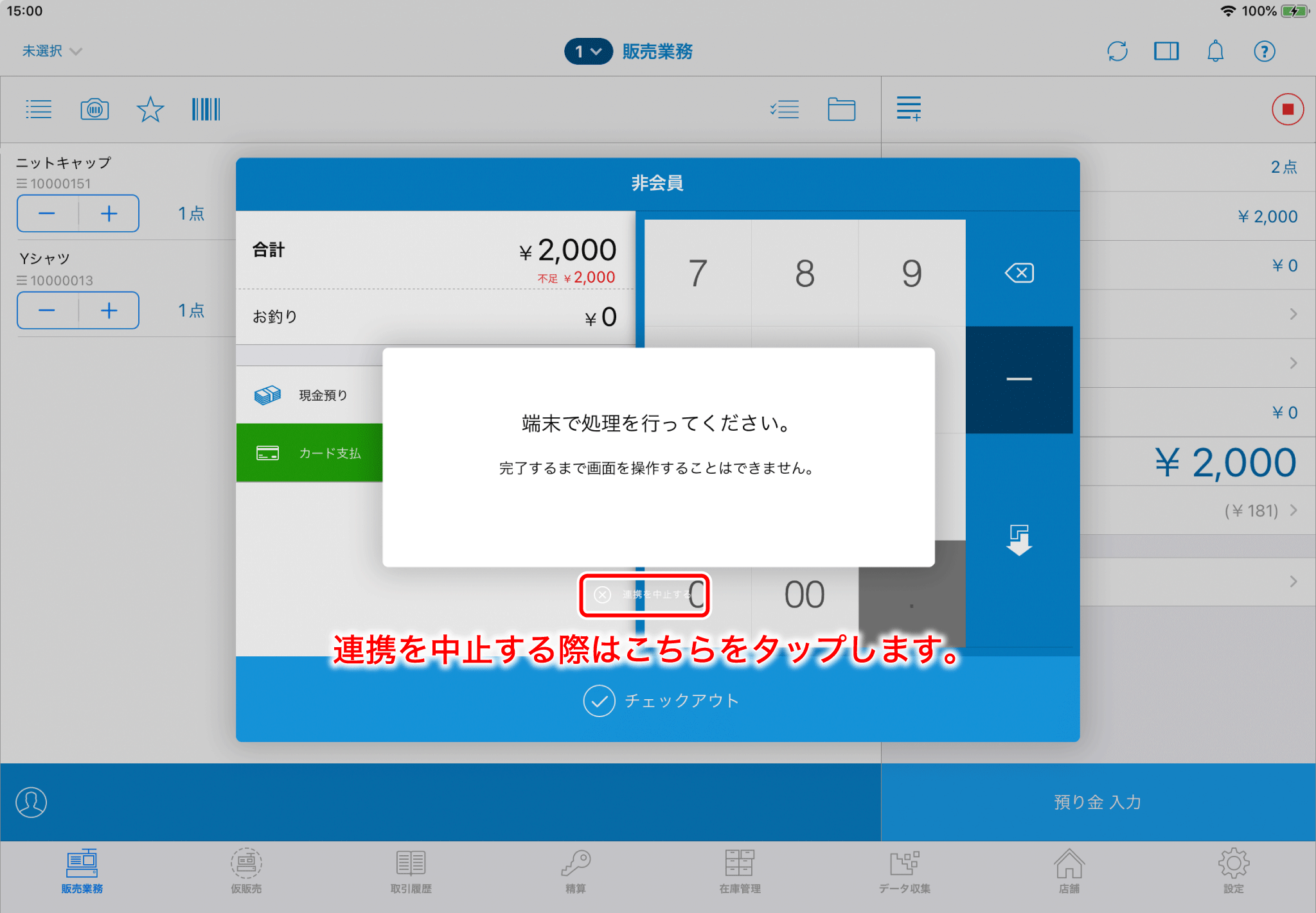 読み取り待機画面が表示されますので、画面の内容に従って決済情報を読み取ります。
