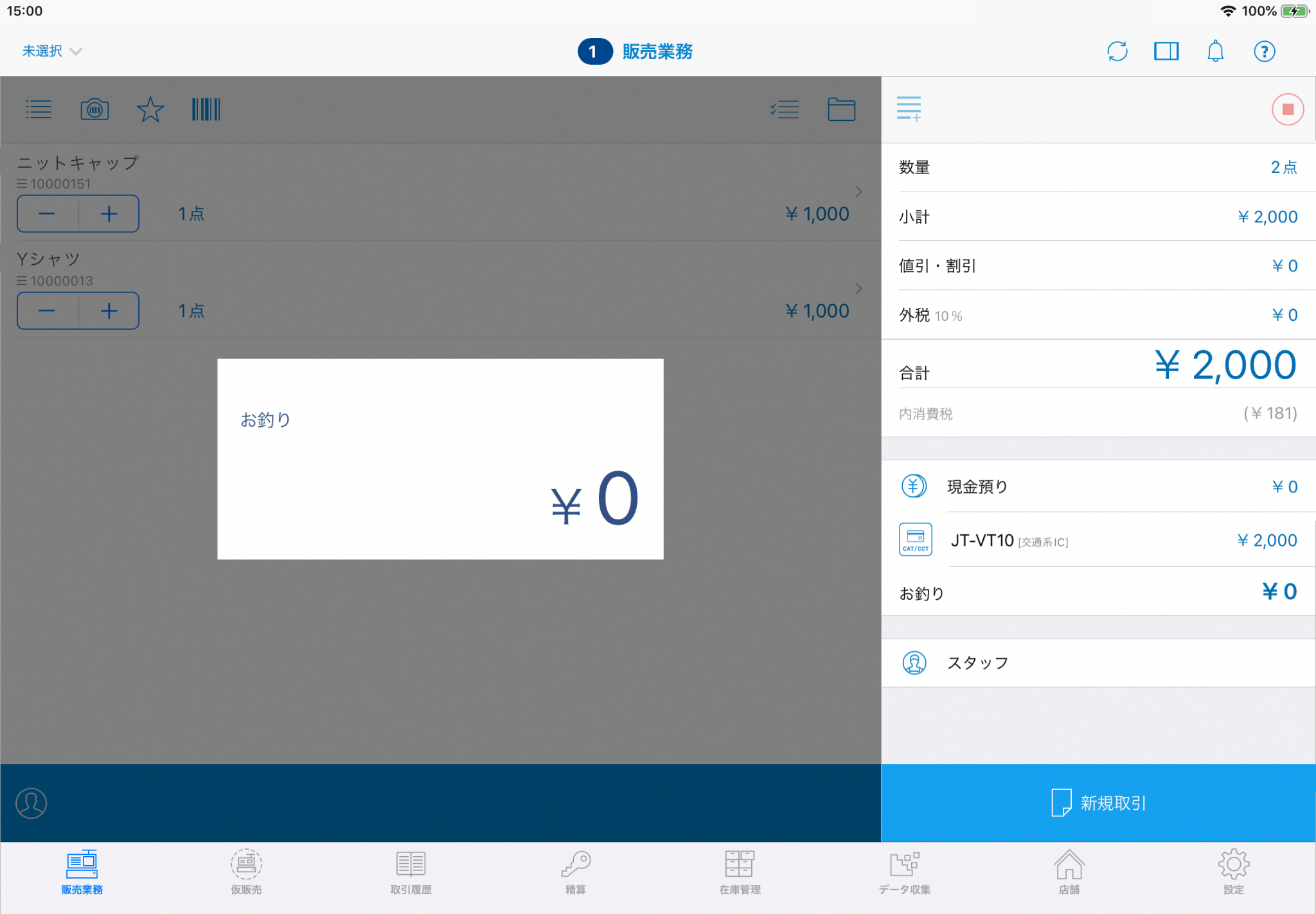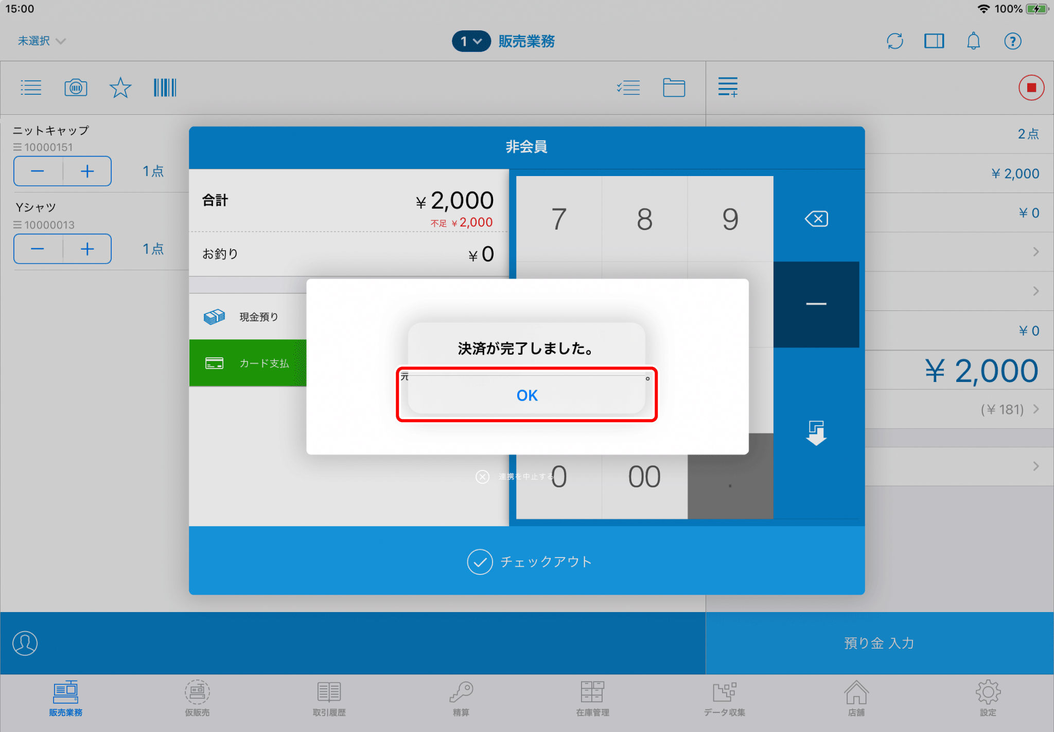 スマレジ・アプリに決済完了のポップアップが表示されます