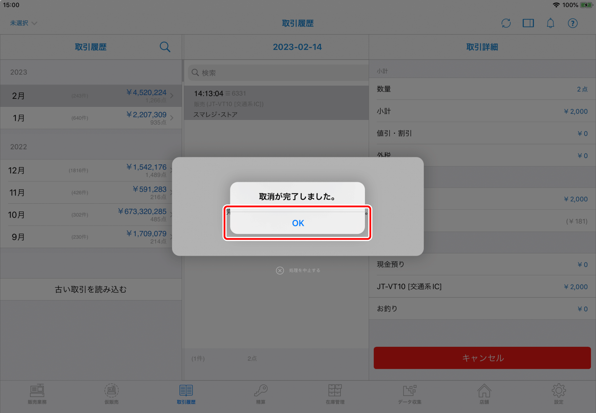 『取消が完了しました。』というポップアップが表示されるので、【OK】をタップします。