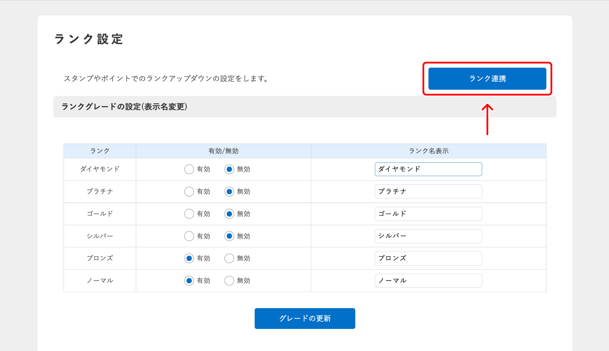 各ランクの有効/無効を設定します。