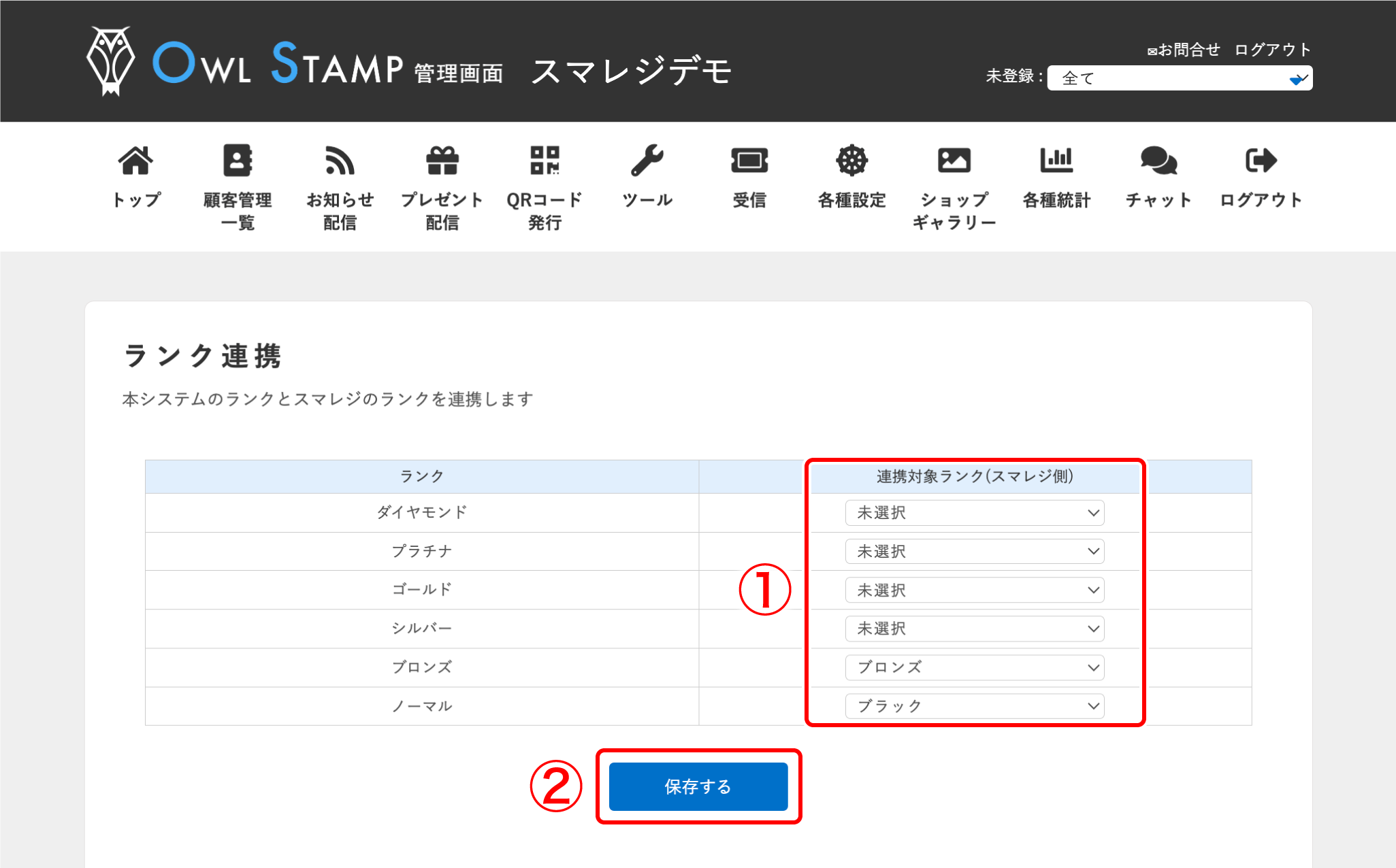 連携対象ランク(スマレジ側)で、紐づける会員ランクを選択します。