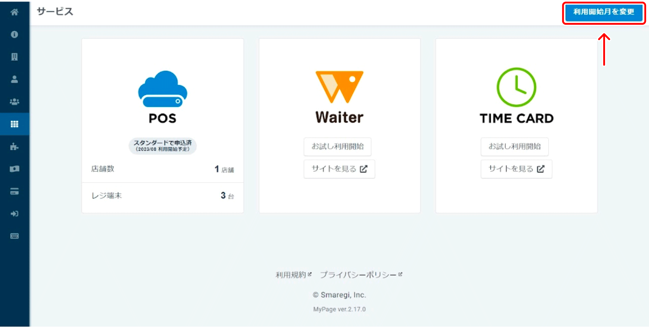 ログイン後に表示される画面で【利用開始月を変更】をクリックします。