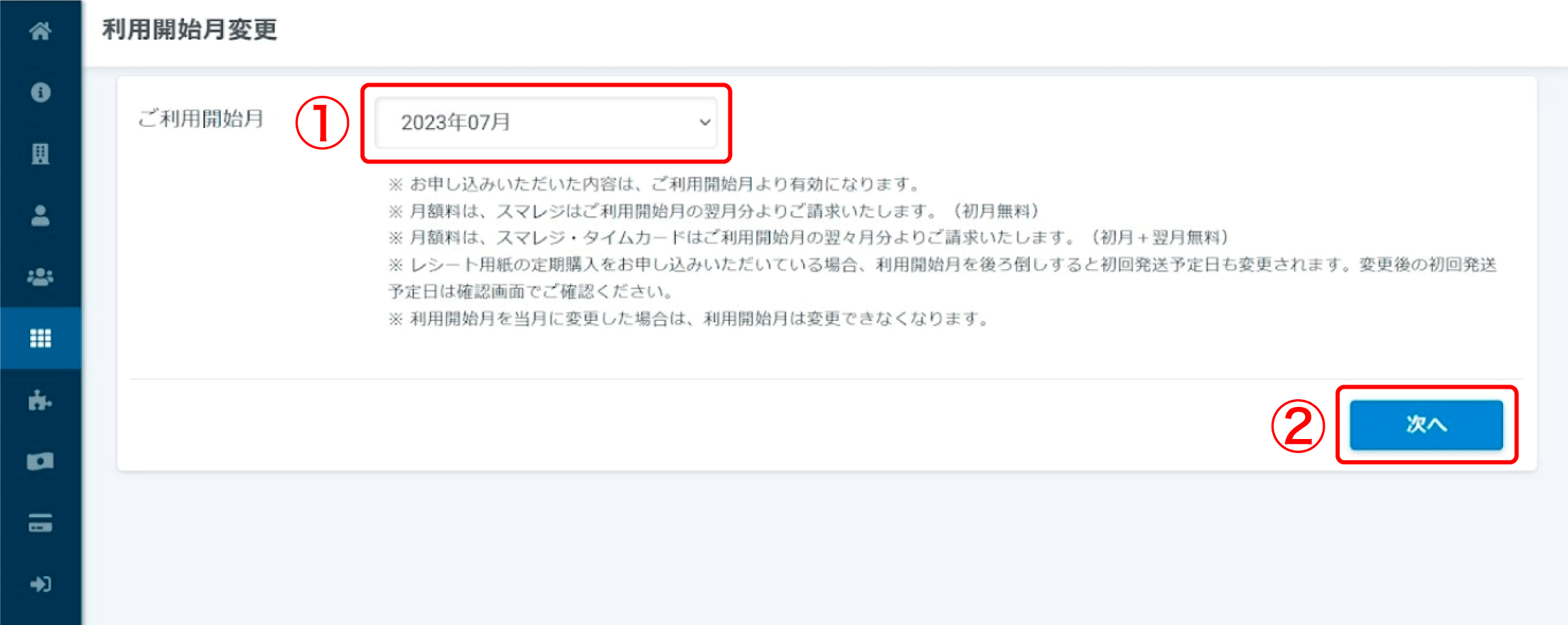 申し込みいただいた際に選択した『利用開始月』を管理画面で変更することが可能です。