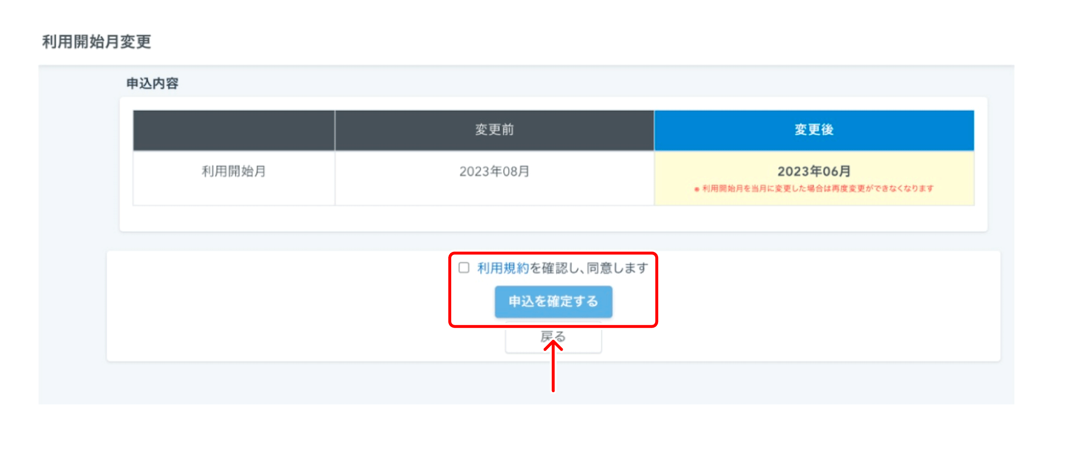 利用開始月の変更は、直接弊社に申し込みいただいた仮申込状態のお客様が対象です。また、利用開始月が未来月の場合にのみ変更可能です。