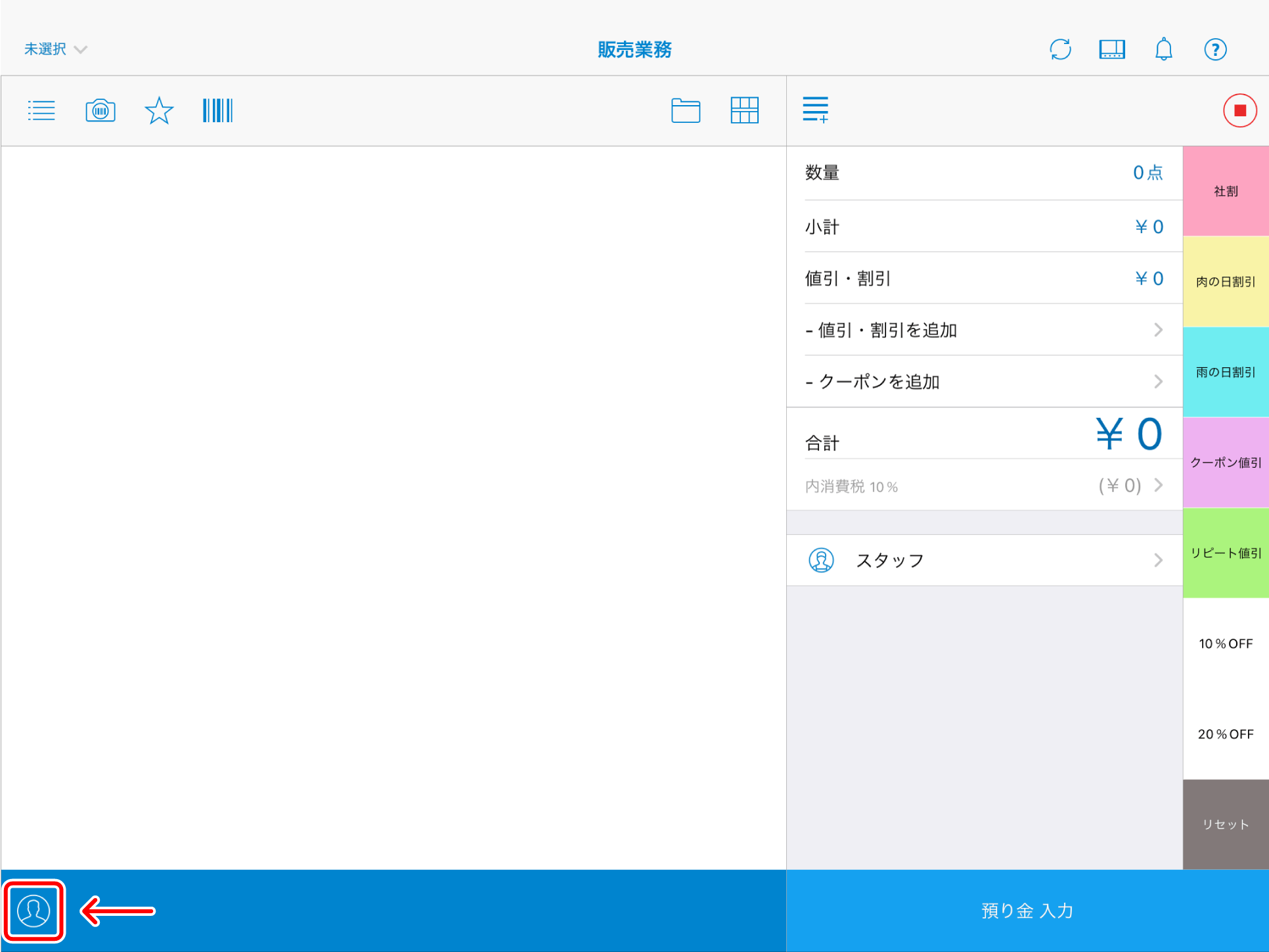 販売業務画面で会員を選択します。