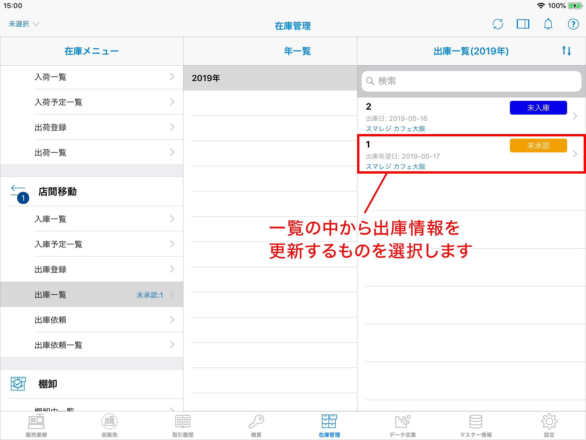 出庫情報の一覧を開きます