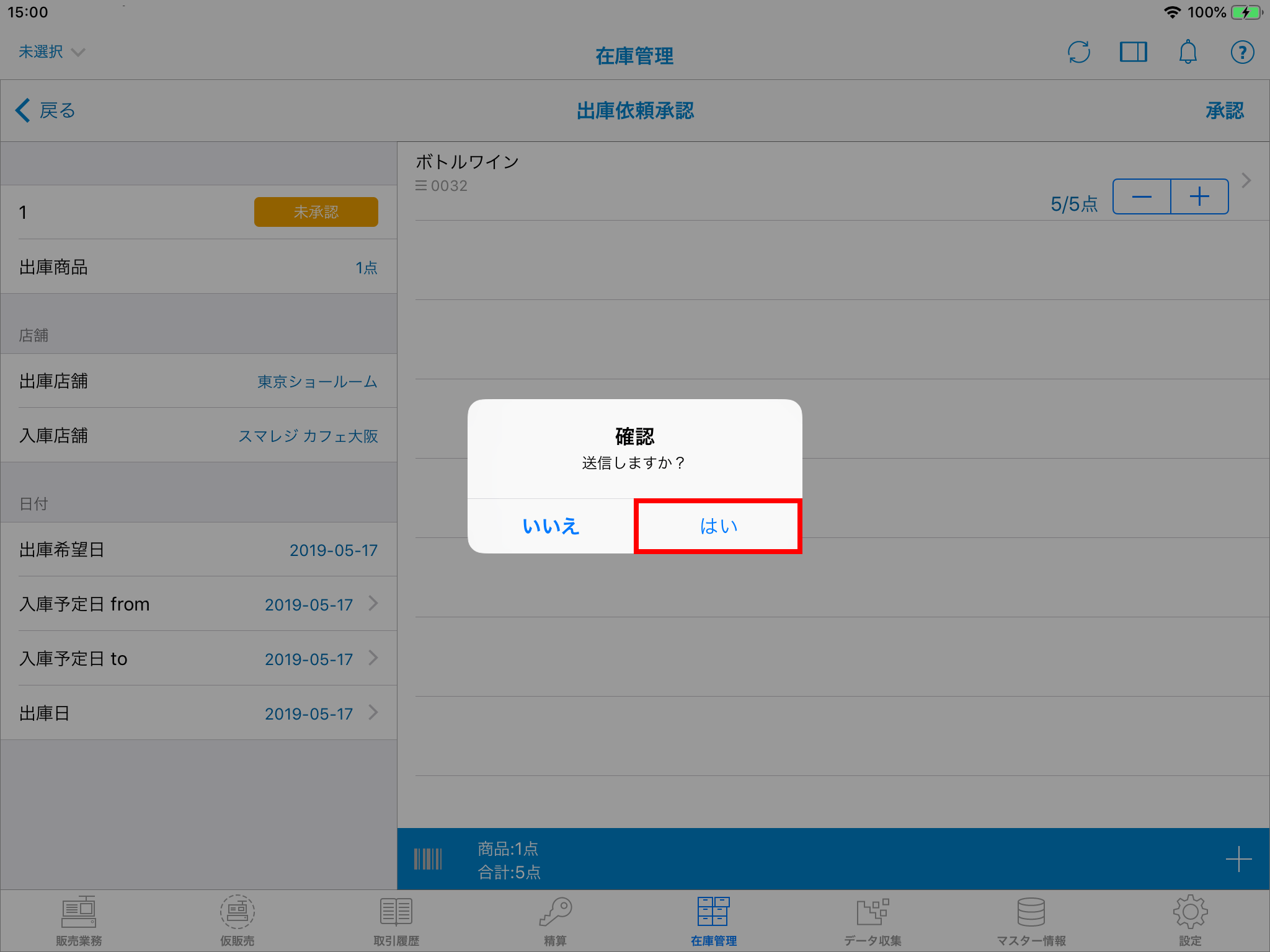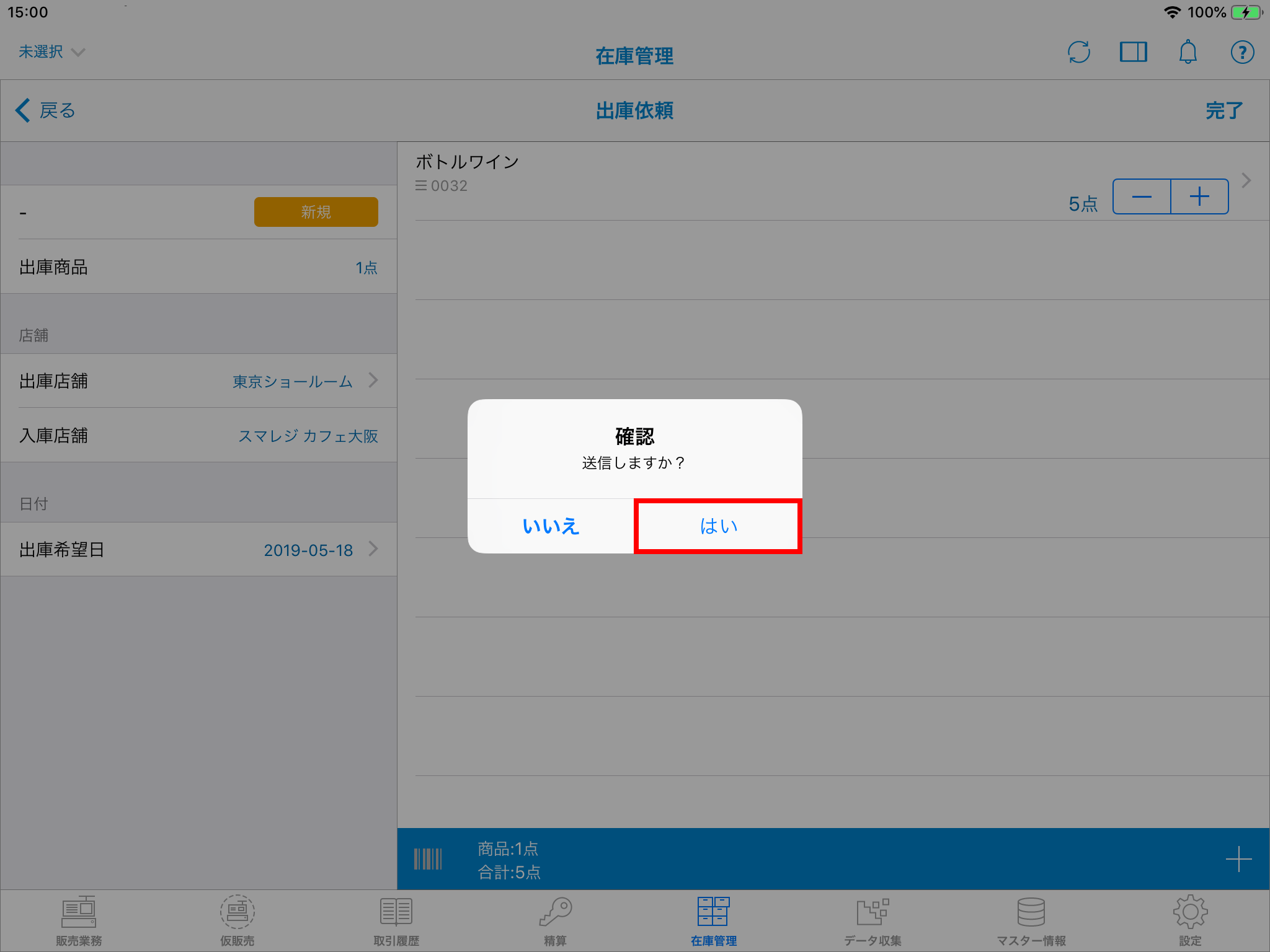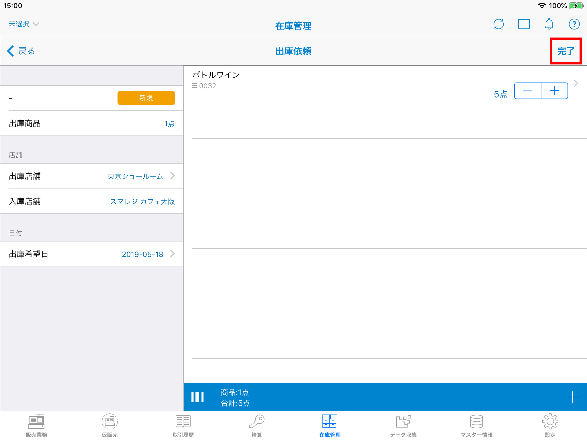 出庫の登録を完了させます