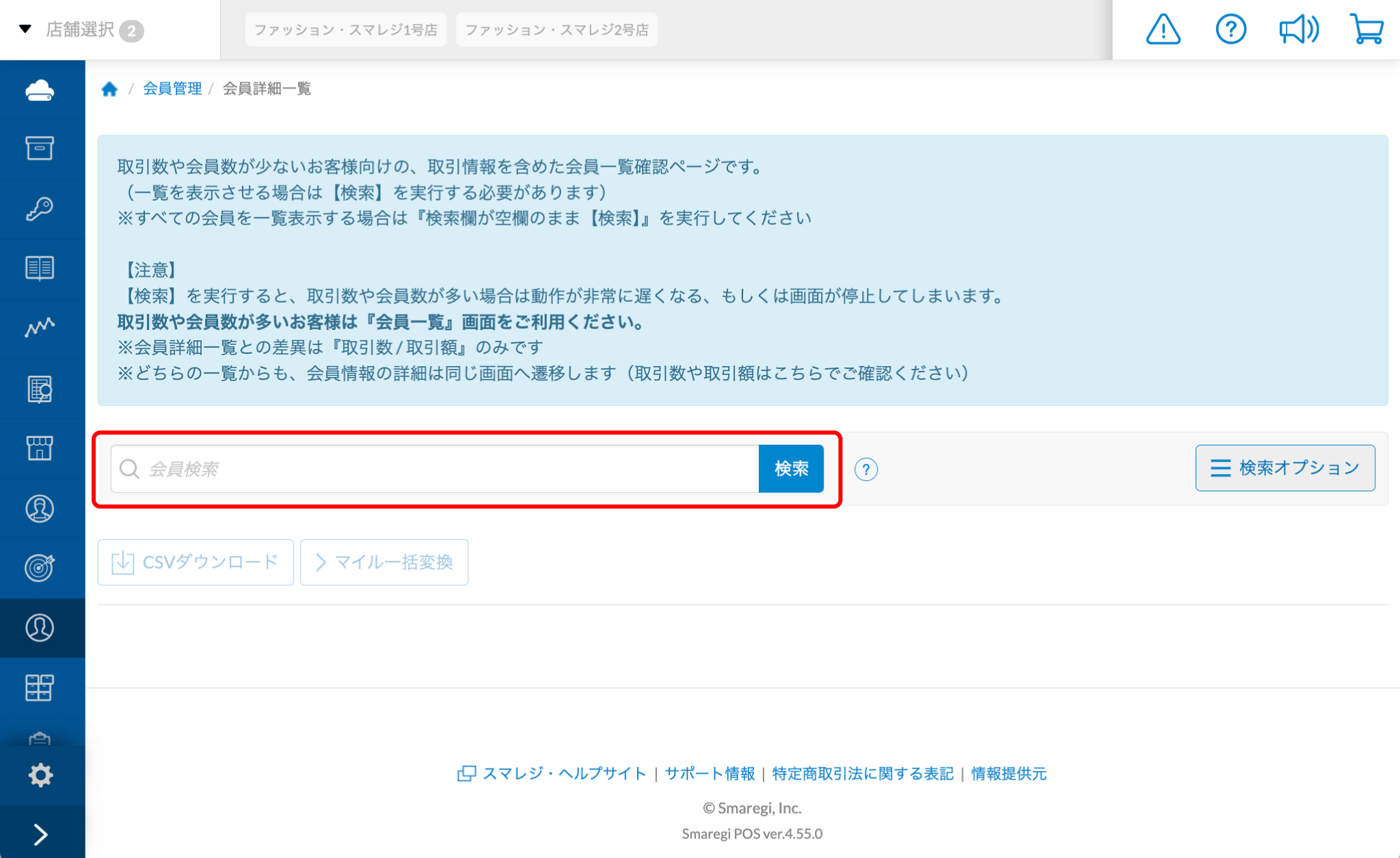 会員の情報を確認できます。会員を検索する場合