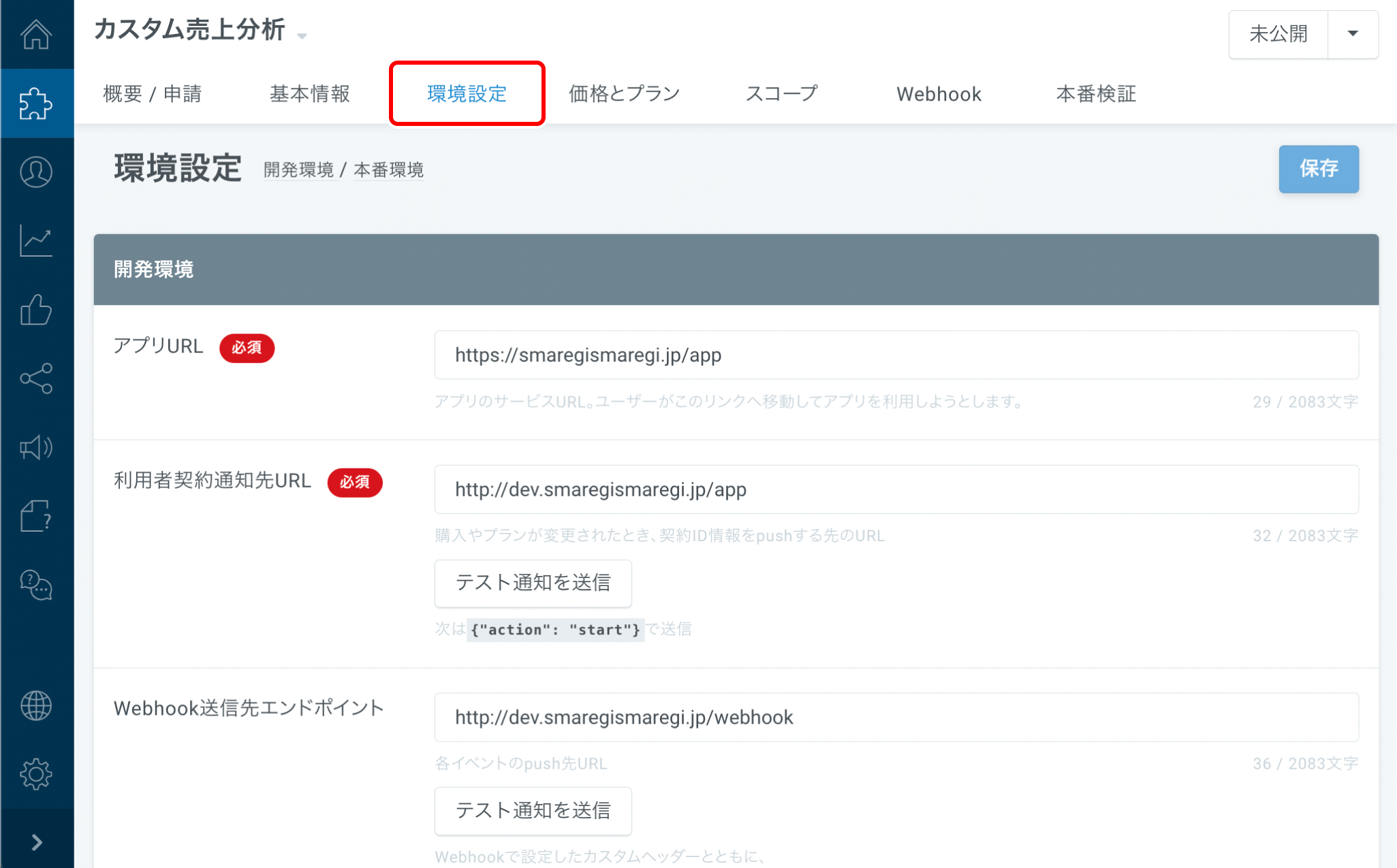 環境についてはこちらをご覧ください。入力完了後、【保存】をクリックします。