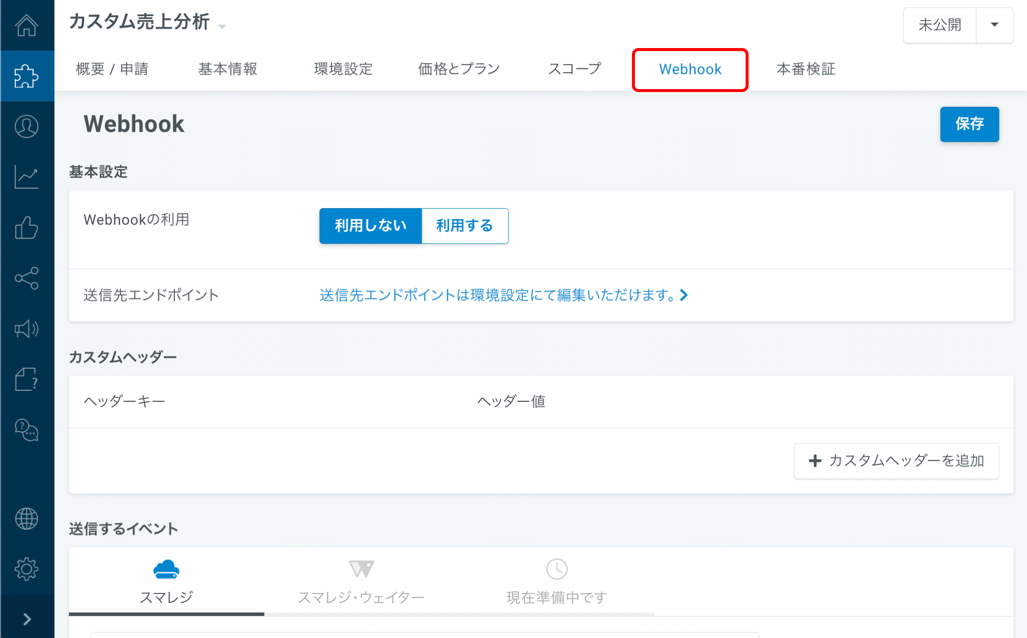 Webhookの設定を行ないます※ネイティブアプリでは利用できません