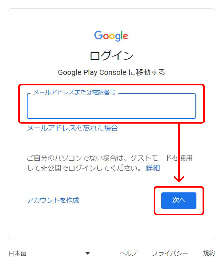 STEP2:Google Play Consoleにログインする