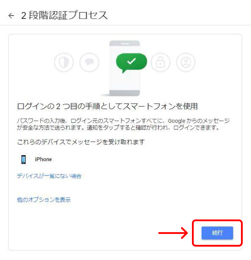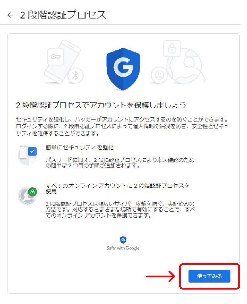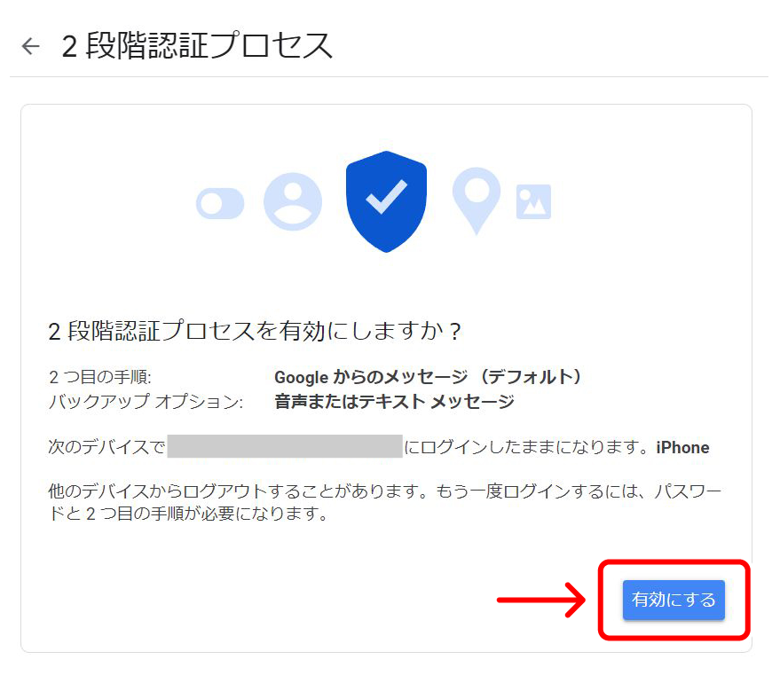 2段階認証プロセスについて確認する画面が表示されます。