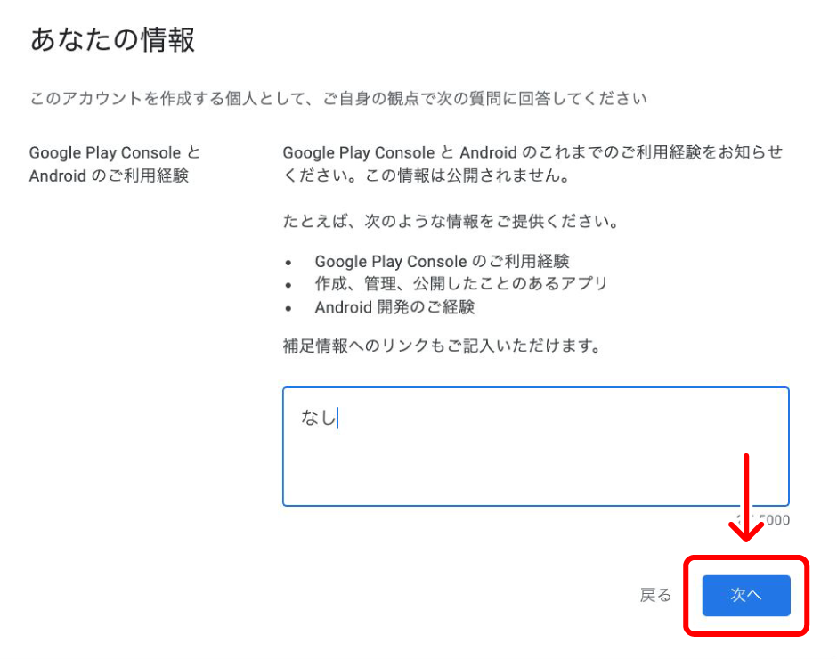 『デベロッパーアカウント』画面が表示されますので、画面の内容に沿って入力してください。
