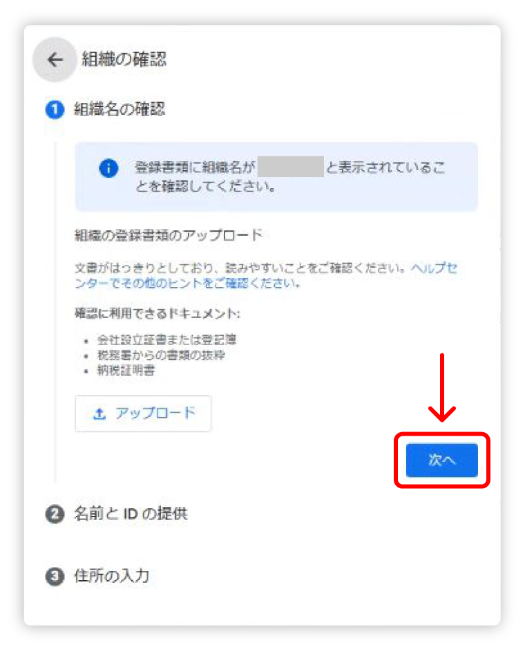 STEP5:Googleへ組織登録書類 / 本人確認書類を提出する