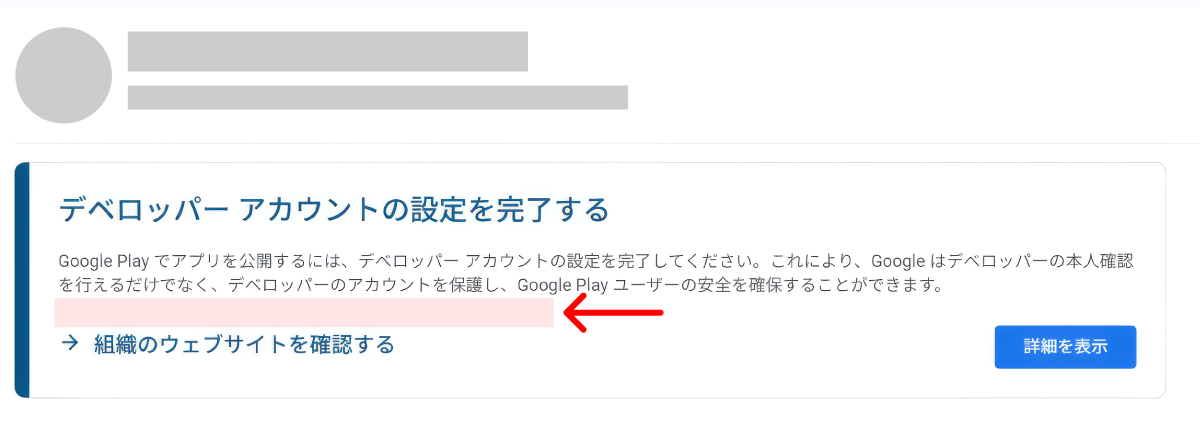『デベロッパーアカウントの設定を完了する』項目の『組織のウェブサイトを確認する』から、【詳細を表示】をクリックします。
